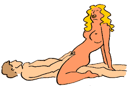 sich flach mit geschlossenen Beinen hin. Die Frau setzt sich auf ihn,