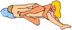 auf der Seite. Die Frau schmiegt sich neben ihn, jedoch mit dem Kopf