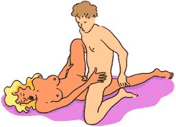 Partnerin und schiebt sein Knie unter den Schenkel des angewinkelten